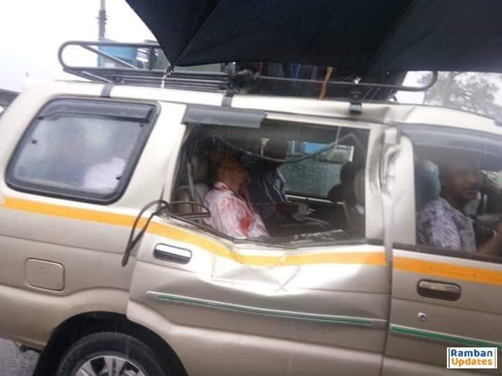 A Tavera vehicle, which was part of a cavalcade carrying a batch of pilgrims to twin base camps of Pahalgam and Baltal, was hit after the rock rolled down from a hill top, they said.