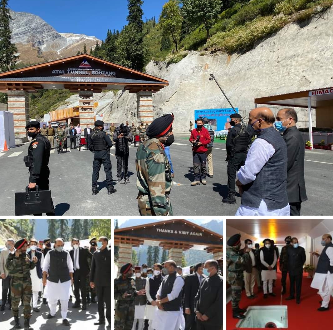 Srinagar, Oct 02 (KINS): Ahead of Inugural Ceremony tomorrow, Defence Minister Rajnath Singh visited ‘Atal Tunnel, Rohtang’ to review the preparations . Official sources told news agency KINS that PM Narendra Modi will dedicate the Tunnel to the Country tomorrow . This 9.02 Km long ‘Engineering Marvel’ will connect Manali to Lahaul-Spiti valley throughout the year.(KINS)