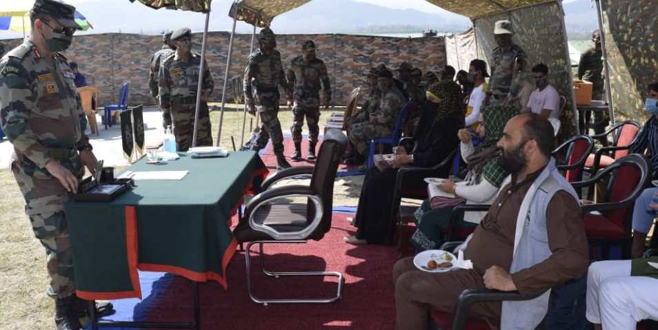 Srinagar, Oct 02 (KINS). The Army Friaday said that ablood donation camp was organised by Chak Kigam Army Camp under aegis of Charkut Garrision and Kilo Force in collaboration with Indian Red Cross society at Kigam, Kupwara in North Kashmir on eve of Gandhi Jayanti. In a statement issued to news agency KINS, the army said “During the event while many of the civilian and soldiers donated blood, Chairman of Block Development Council, Nutnussa (Kupwara) Ms Ashifa Begum and social worker Ms Hanifa Begum also came forward to participate in the initiative known for highest form of humanism”.