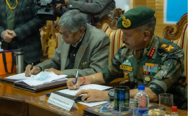 Srinagar, Nov 08 (KINS): A Memorandum of Understanding (MoU) was signed between University of Kashmir (UoK), Srinagar and Chinar Corps on 08 November 2021 at Gandhi Hall, University of Kashmir.