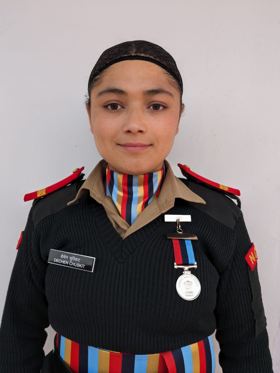 Belonging to a remote village did not deter Dechen Chuskit’s determination. In 2023, she secured a coveted spot in the Republic Day Camp contingent of the JK&L Directorate, participating in Group Song, Group Dance, Ballet, and the NIAP team, showcasing the rich culture and traditions of Ladakh. Her exceptional performance across various NCC activities, despite facing economic, social, and cultural challenges, reflects her resilience and commitment to the cause.