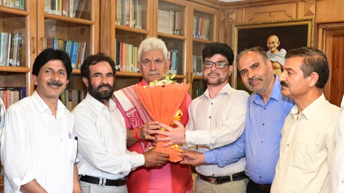 Later, Shafiq Mir, Chairman of the All J&K Panchayat Conference, and Gulzar Ahmad Bhat, Chairman of the All J&K Folk Artists Association, called on the Lt Governor at Raj Bhawan.