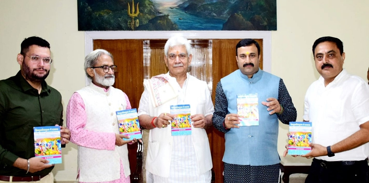 JAMMU, SEPT 27: Lieutenant Governor Shri Manoj Sinha today released a Hindi book titled “Visnudharmottarapuranam mein Raj Tantra”, edited by Prof. Sharat Chander Sharma. The book was written by Late Dr. Dev Rattan Shastri.