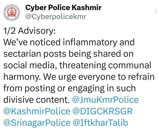 Cyber Police Kmr Warns Against Inflammatory Social Media Posts Threatening Communal Harmony