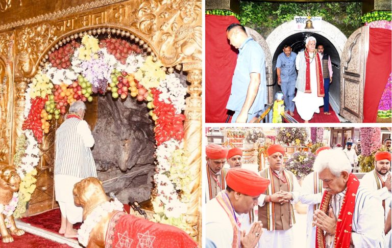 “Paid obeisance at revered Shri Mata Vaishno Devi Shrine on the auspicious occasion of Durga Puja and prayed for J&K’s prosperity and the well-being of all,” Office of LG J&K post on X.