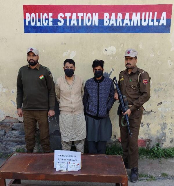Srinagar , November 2 : Continuing its efforts to eradicate the menace of drugs from the society, Police have arrested two drug peddlers in Baramulla and recovered contraband substance from their possession.