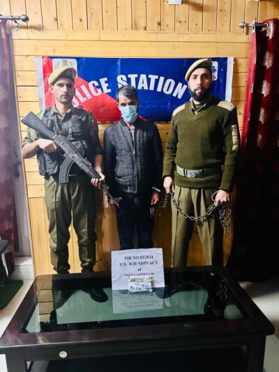 A Police party of Police Station Baramulla headed by SHO PS Uri at a checkpoint established at Garkote-MachikrandCrossing Uri, intercepted one person who was identified as Shabir Ahmad Janjua son of Abdul Majeed resident of Machikrand Uri. During search 36 grams of contraband Charas like substances was recovered from his possession. He has been arrested.