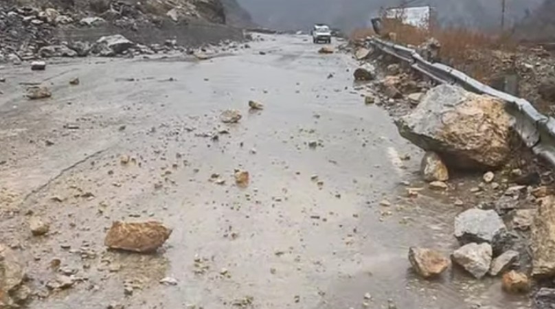 News agency KINS reported that continuous rainfall since yesterday has further worsened the situation, with shooting stones frequently rolling down from hill slopes, making it extremely challenging for authorities to restore the road.