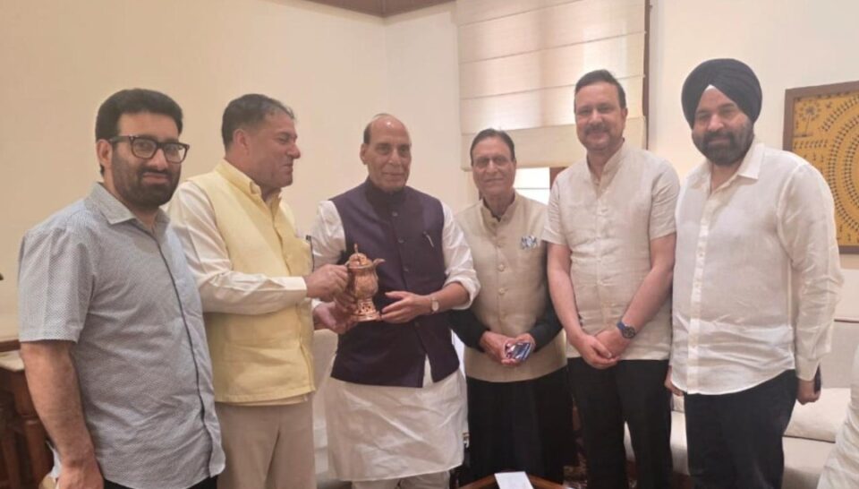 New Delhi, April 17 (KINS): Members of Parliament Chowdhary Mohd Ramzan, Sajjad Ahmed Kichloo and Shammi Oberoi, along with MLAs Nazir Ahmad Khan Gurezi and Qaisar Jamsheed Lone, met Defence Minister Rajnath Singh at Parliament House in New Delhi on Friday and raised several public concerns and developmental demands related to Jammu and Kashmir.