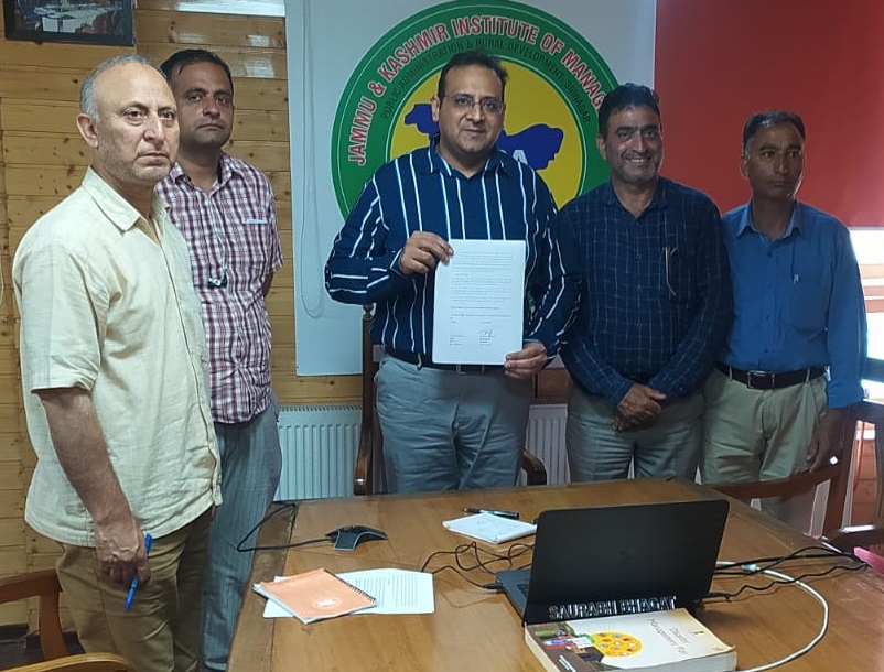 SRINAGAR, JULY 4: Director General J&K Institute of Managemnet, Public Affairs & Rural Development (IMPARD), Saurabh Bhagat today signed Memorandum of Understanding (MoU) with Gujarat National Law University (GNLU) through Video Conference here.