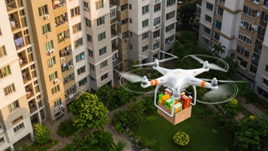 Bangalore May 02 (KINS): An apartment complex in South Bengaluru now receives groceries, medicines, and daily essentials through drone deliveries. Prestige Falcon City association has teamed up with quick commerce platform BigBasket and drone logistics firm Skye Air Mobility to enable deliveries using drones within five to 10 minutes. Residents say the initiative aims to speed up service, enhance efficiency, and reduce traffic congestion within the gated community, which previously saw multiple delivery agents making frequent trips. Using drones also helps reduce the travel radius and lower carbon emissions.