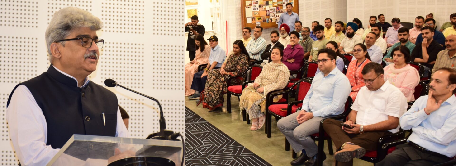 JAMMU, APRIL 30: Chief Secretary, Atal Dulloo, today inaugurated a three-day painting exhibition titled “The Meanderings” by Pradeep Wahule (IFS, Conservator of Forests) at Kala Kendra Jammu.